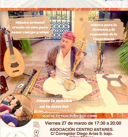 9 febrero, 2026TALLER DE SANACIÓN CON MÚSICA SUFÍ: Mucho más que música. Quitando los velos. Vive una experiencia donde la música se convierte en el lenguaje que habla a nuestro ser, y a cada célula de nuestro cuerpo, en el idioma de la Armonía del Universo.Una dimensión diferente de la música que rescata su sentido sagrado, donde se rompen los límites, y nos sentimos parte de algo mayor.